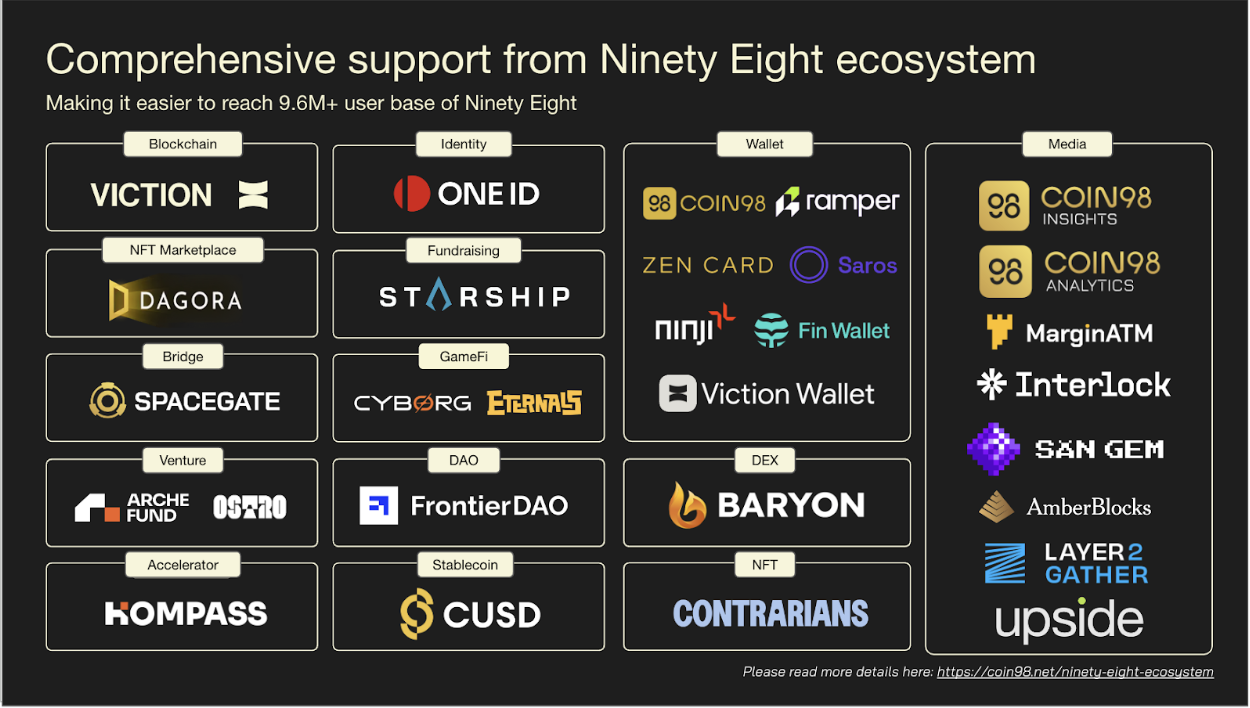 Viction receives support from the Ninety Eight Ecosystem, as well as numerous close partners and projects.