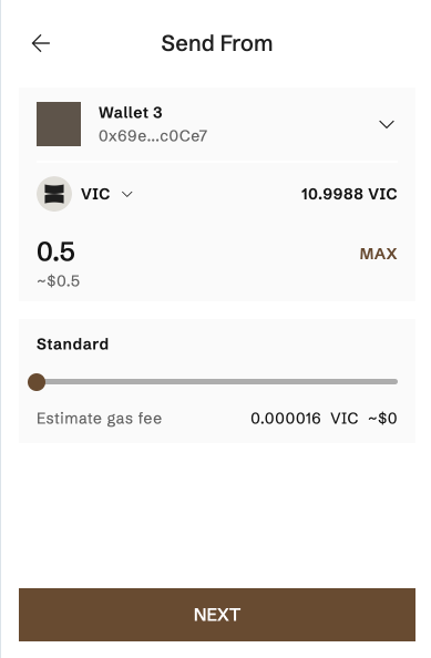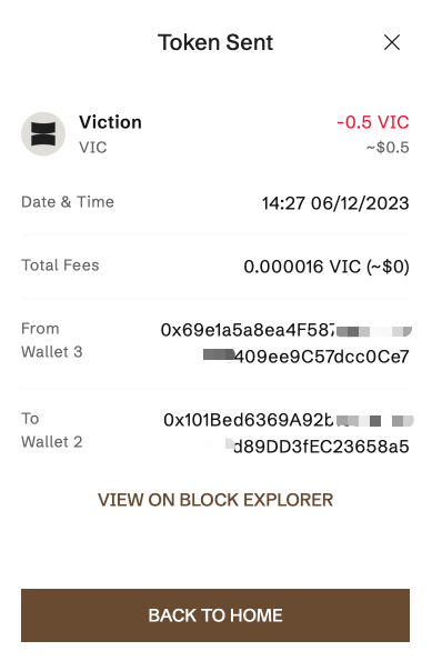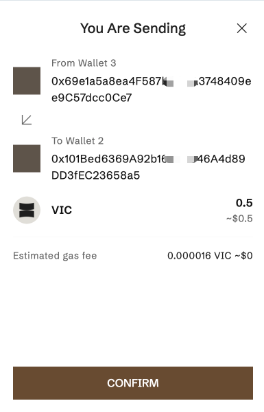 * Click on the contact icon to select the wallet available in Viction *(Show only wallets other than sending wallet)*